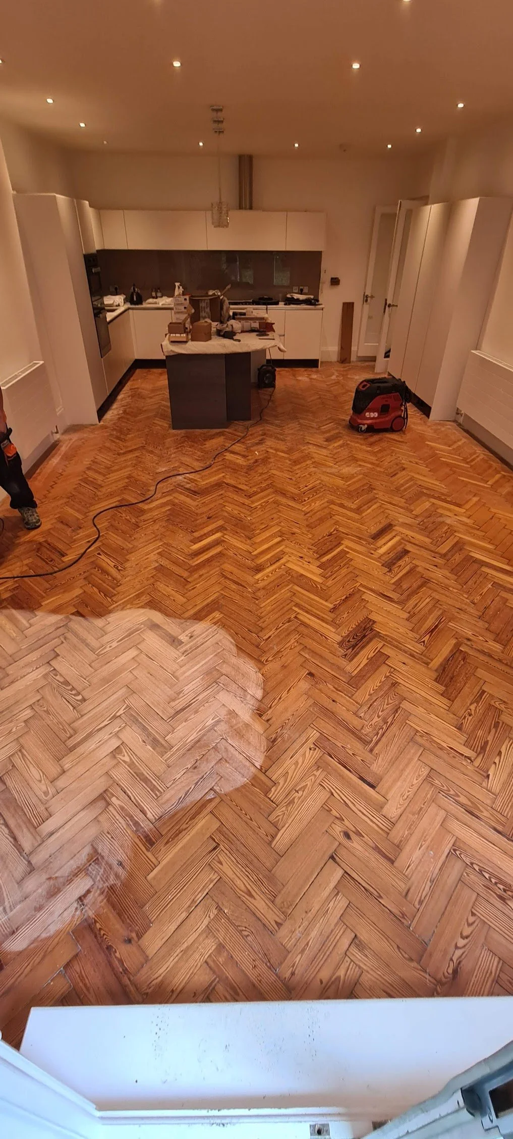At The Ground Floor, we also have a dedicated wood floor division specialising in refurbishing, sanding, cleaning, lacquering, and oiling wood floors. This means we can cater for every client’s needs. So if you have a parquet floor in one room and a stone/tiled floor in another, you only need to have one company in to do all the work. This has proved popular with our clients, as there is only one dedicated project manager for the entire job. We co-ordinate all the timings to work with your busy lives and households and keep disruption to a minimum. We carry out wood floor restoration in both domestic and commercial properties, from living rooms to school halls, so whatever your project we can help.